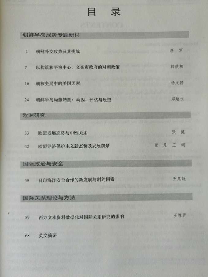 郑继永:“朝鲜半岛局势转圜:动因、评估与展望”,《现代国际关系》, 2018年第5期