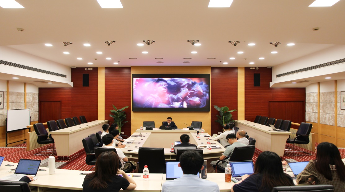 (刘鸿武教授为现场师生播放《浙江师范大学非洲博物馆开馆十周年纪念宣传片》)