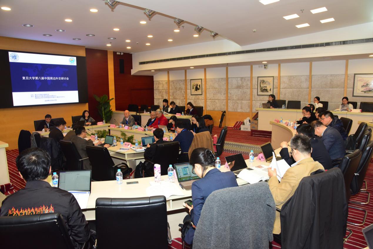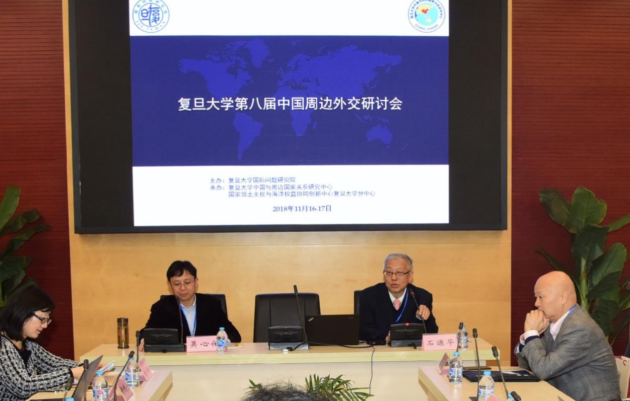 20181116日至17日,由复旦大学国际问题研究院(简称“研究院”)主办,复旦大学中国与周边国家关系研究中心(简称“中国周边中心”)承办的“复旦大学第八届中国周边外交研讨会”(简称“研讨会”)在复旦大学举行。本届研讨会的主题为“新时代的中国周边外交:机遇与挑战”。研究院院长吴心伯教授在研讨会开幕式上致辞,中国周边中心主任石源华教授主持开幕式。国防大学朱成虎少将、外交部亚洲司董书慧参赞分别做主旨演讲。