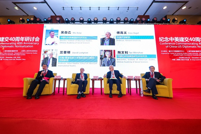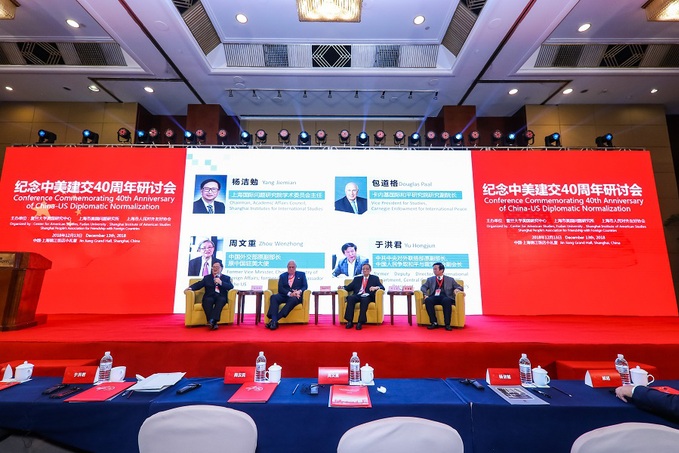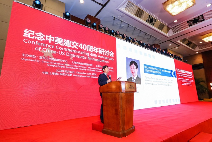 12月13日,由复旦大学美国研究中心、上海市美国问题研究所和上海市人民对外友好协会共同主办的“纪念中美建交40周年研讨会”在上海隆重举行。来自中美两国的知名学者、资深外交官和上海市各界人士200余人共聚锦江饭店这一在中美关系发展中有着特殊历史意义的地点,共话中美关系的历史、现实和未来。