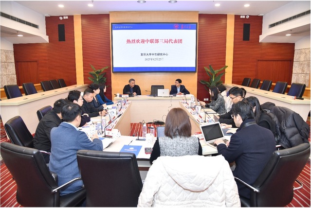 2025年12月23日,中联部三局调研组一行访问复旦大学国际问题研究院中东研究中心,与中东中心研究人员就当前中东地区局势及其走向、中国中东外交等议题进行了座谈交流。