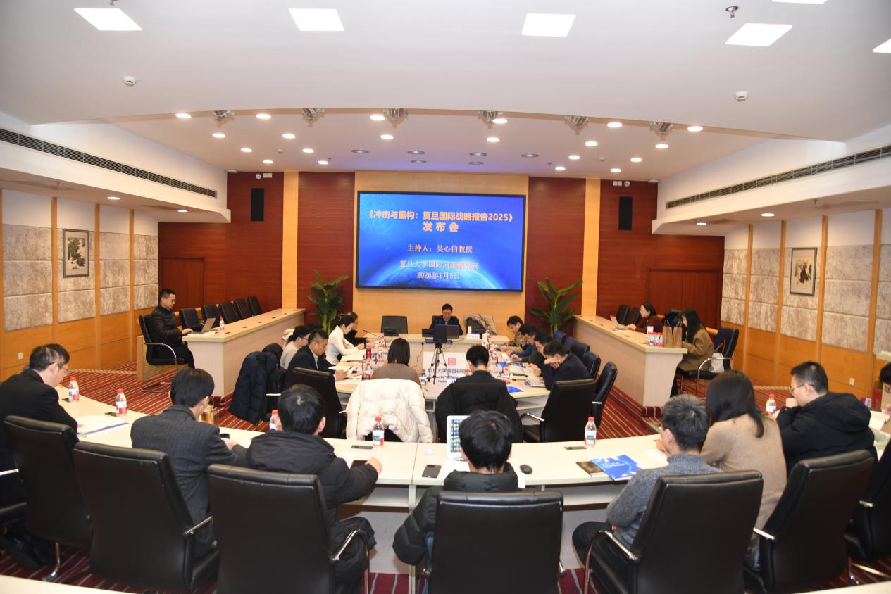 2026年1月5日,复旦大学国际问题研究院举行《冲击与重构:复旦国际战略报告2025》发布会。复旦国研院院长、美国研究中心主任吴心伯教授主持发布会,宋国友、林民旺、孙德刚、邢丽菊、张家栋、韦宗友等13位区域国别研究专家作专题汇报。来自复旦国研院、国务学院,以及北京大学、中国社科院、清华大学、中国人民大学、同济大学、吉林大学、上海外国语大学等40多所兄弟院校的近200位师生以线上线下方式参会。北京日报、解放日报、今日俄罗斯等多家海内外媒体记者参加发布会。