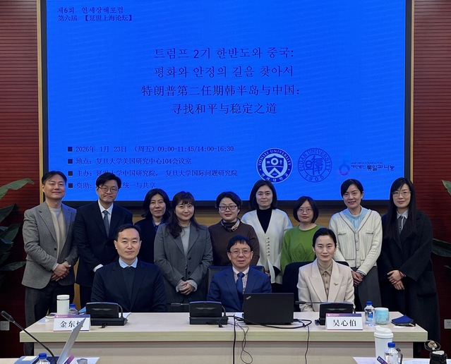 2026年1月23日,复旦大学国际问题研究院与延世大学中国研究院在复旦大学美国研究中心联合主办了第六届延世-上海论坛。复旦大学国际问题研究院院长吴心伯教授致辞并主持。延世大学中国研究院院长金铉哲教授与常务副院长韩硕熙教授线上致辞。复旦大学国际问题研究院朝鲜韩国研究中心主任邢丽菊教授出席。