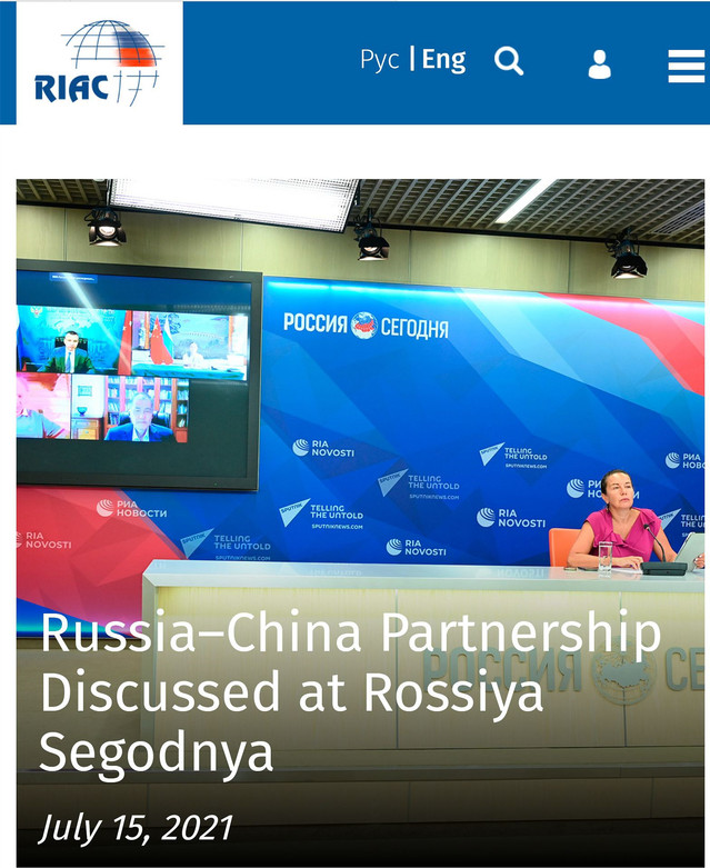2021年7月15日,由复旦大学国际问题研究院、俄罗斯国际事务委员会和俄罗斯科学院远东研究所共同撰写的中俄关系年度报告《中俄对话:2021模式》(俄文版)在莫斯科发布。发布会在俄罗斯“今日俄罗斯”国际新闻社的视频平台上进行,由知名主持人阿·布里亚克主持,并进行网上直播。参加发布会并发言的有俄罗斯国际事务委员会执行理事长科尔杜诺夫,中国驻俄罗斯大使馆公参常旭红,俄罗斯外交部第一亚洲司司长季诺维也夫,俄罗斯科学院远东研究所代理所长马斯洛夫,俄罗斯驻中国大使馆高级参赞法捷耶夫,以及我院的赵华胜研究员。报告得到了与会者的高度评价和赞誉。