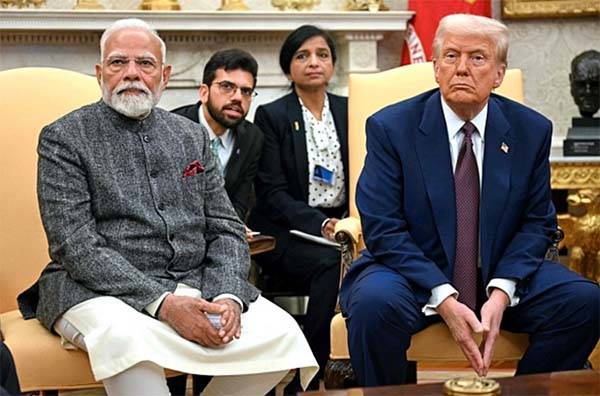 今年2月,莫迪和特朗普在白宫会晤。 视觉中国