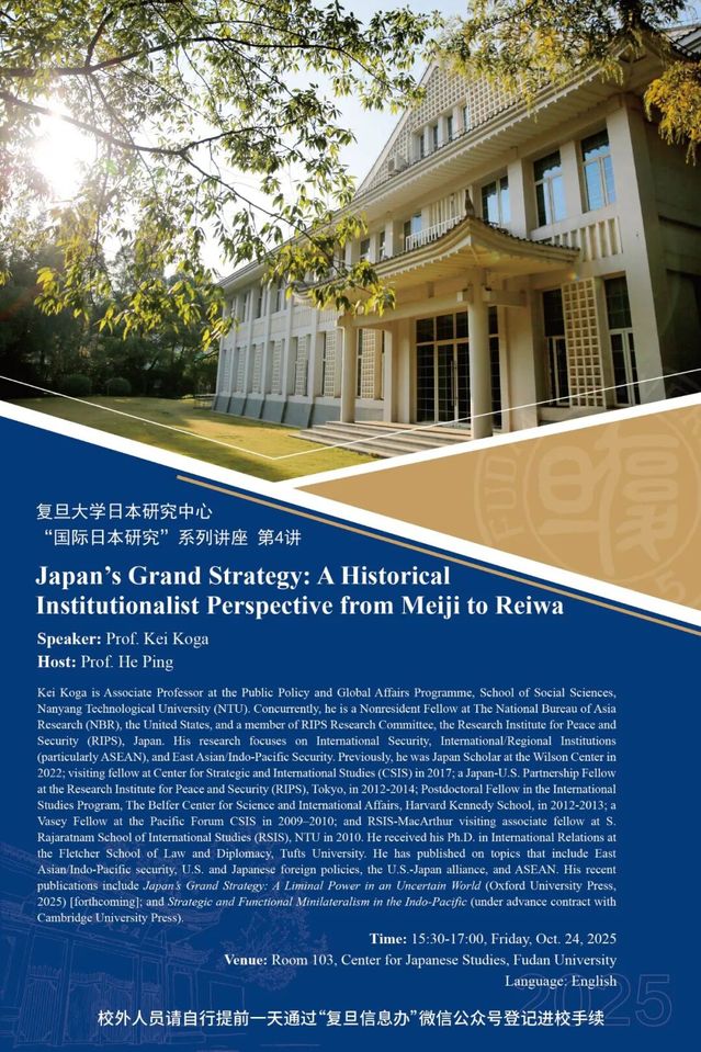 讲座预告 | Japan’s Grand Strategy:A Historical Institutionalist Perspective from Meiji to Reiwa(15:30-17:00)
