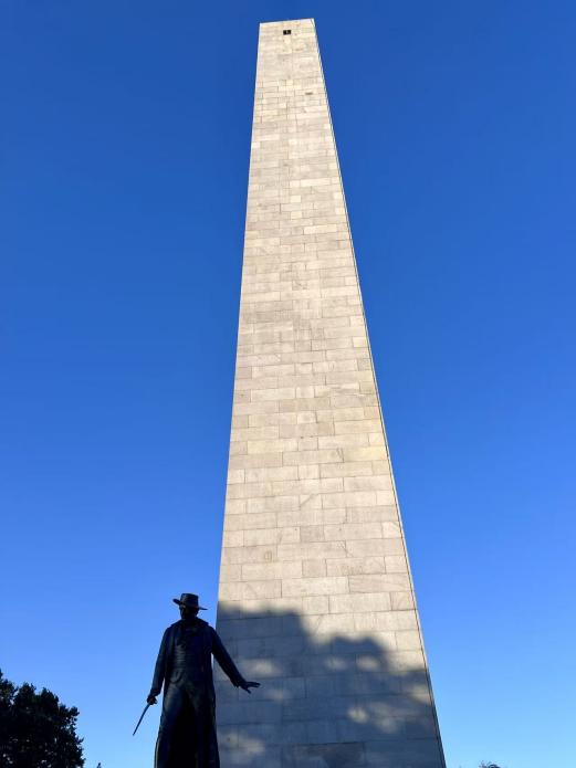 在宪法号博物馆(USS Constitution Museum),同学们近距离观摩了这艘被誉为“老铁甲”的美国海军传奇战舰,深刻体会到其在美国建国初期海上防卫与国家象征中的重要作用。随后,代表团登上邦克山纪念碑(Bunker Hill Monument),俯瞰波士顿全景,回顾1775年那场关键战役,感受美国人民为争取独立所展现的勇气与牺牲精神。
