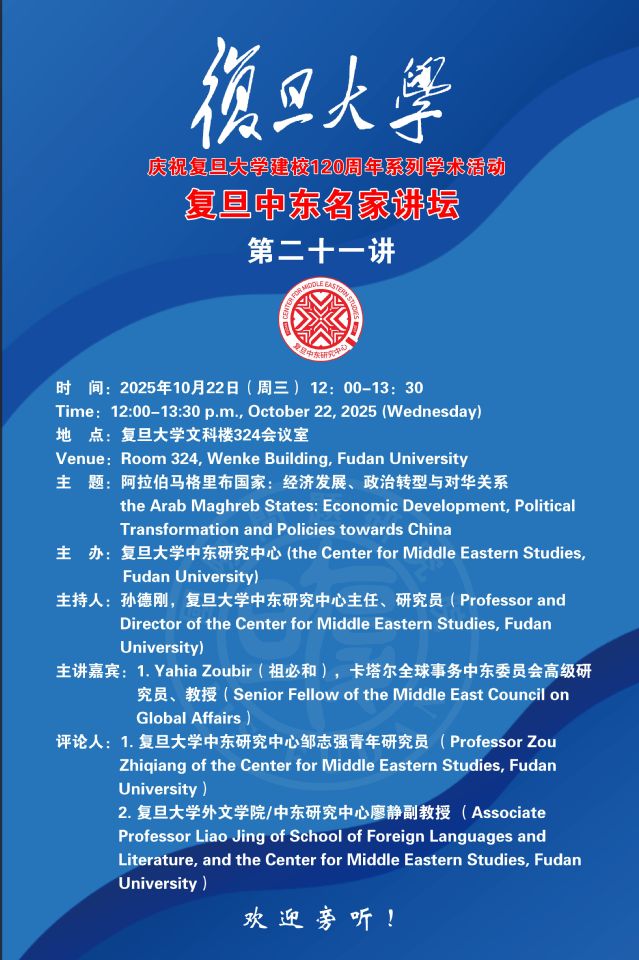 中东名家讲坛 | 阿拉伯马格里布国家:经济发展、政治转型与对华关系(12:00-13:30)