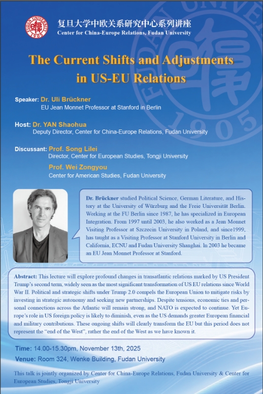 This talk is jointly organized by Center for China-Europe Relations, Fudan University & Center for European Studies, Tongji University