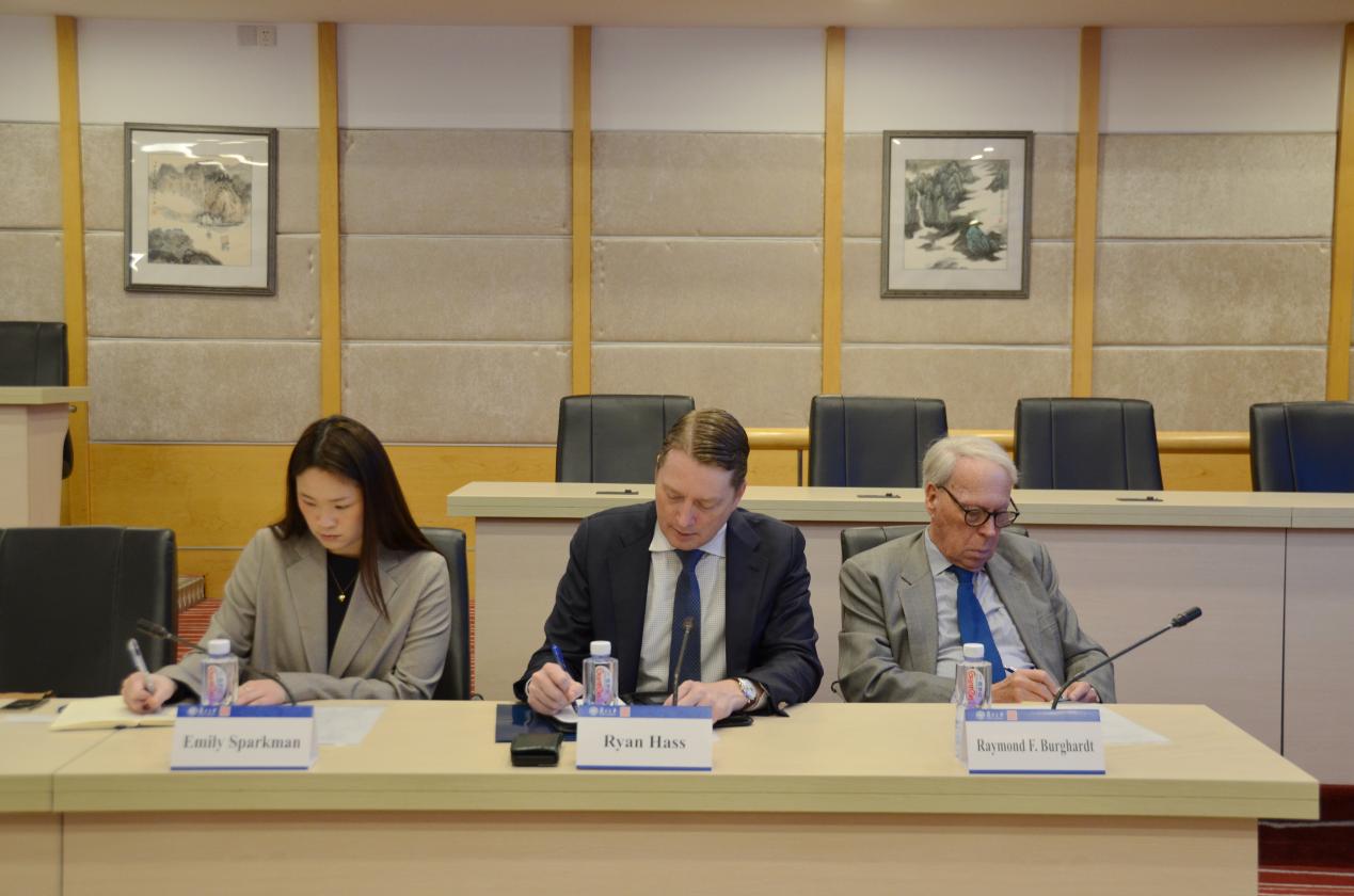 2025年12月1日,美国外交政策全国委员会(National Committee on American Foreign Policy)代表团一行访问美国研究中心并举行座谈。中心主任吴心伯教授和美国前代理助理国务卿董云裳(Susan Thornton)分别做引导发言,随后美方成员薄瑞光(Raymond Burghardt)、何瑞恩(Ryan Hass)以及中心成员信强、宋国友、张家栋、韦宗友、蔡翠红、温尧等人,围绕中美关系走向、台湾问题、中美经济与科技竞争态势等问题,进行了深入交流与研讨。
