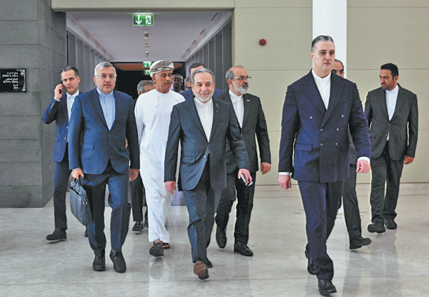 Iran's Foreign Minister Seyed Abbas Araghchi (center) departs for the site of the bilateral talks in Muscat, Oman, on Friday. XINHUA
