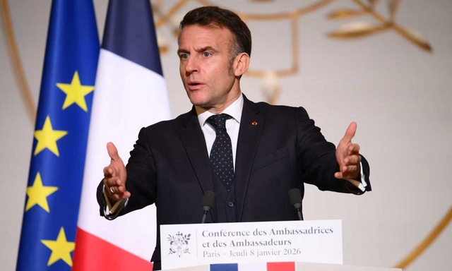 French President Emmanuel Macron during the 2026 Ambassadors' Conference at the Elysee Palace in Paris on January 8, 2026. Photo: VCG