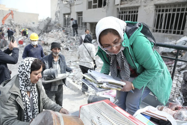 3月12日,在伊朗德黑兰东部一处居民区,居民把从被毁房屋中翻出的物品装车。图源:新华社