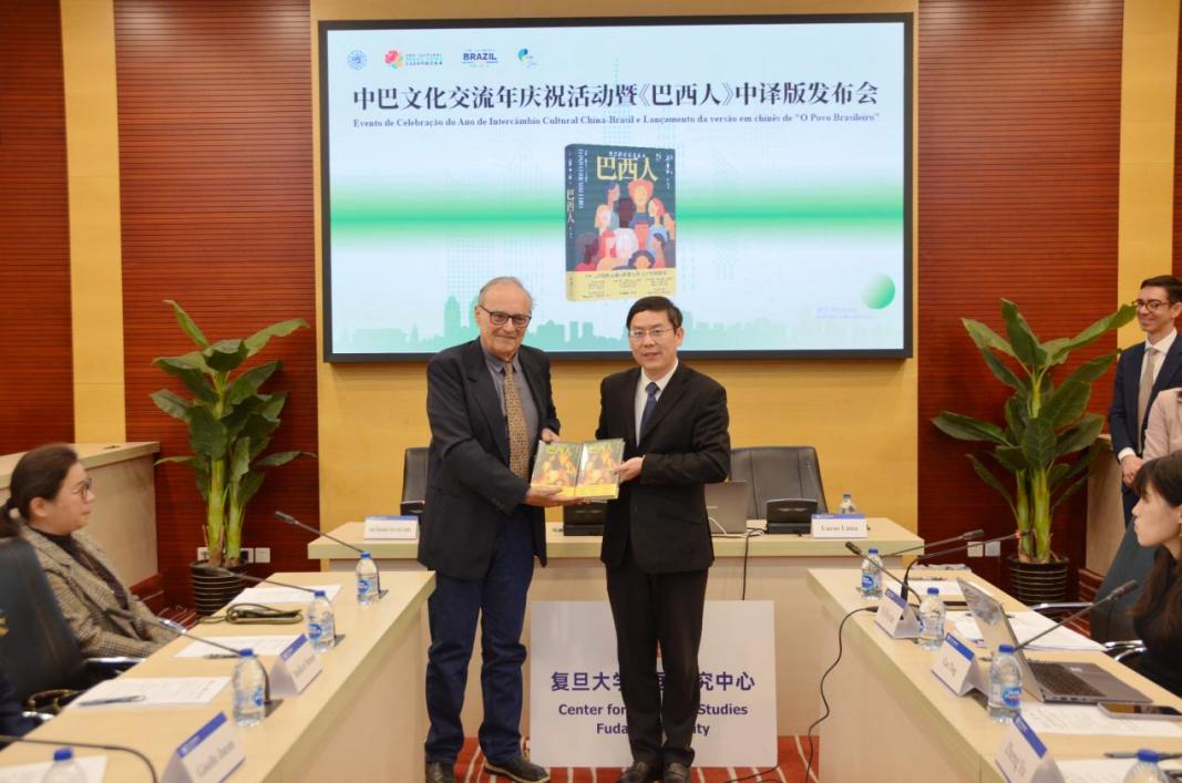复旦大学国际问题研究院副院长祁怀高和巴西驻上海文化领事卢山在开幕式上分别致辞,随后达西·里贝罗基金会主席若泽·罗纳尔多向复旦大学国际问题研究院赠送《巴西人》葡文版和中文版著作。复旦大学拉美研究中心主任曹廷副研究员主持本场活动。