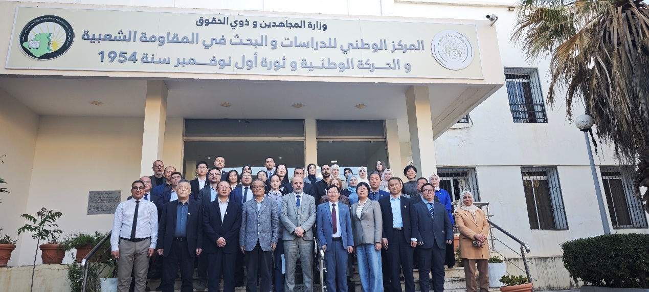 4月15日,复旦中东研究中心代表团赴阿尔及利亚“人民抵抗、民族运动与1954年11月1日革命”国家研究中心参观访问,并与该智库学者50余人举行座谈交流。双方围绕阿尔及利亚民族解放历史、中阿传统友谊以及“一带一路”框架下中阿人文交流等议题展开讨论。