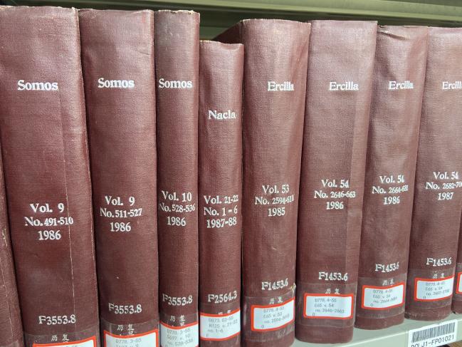 The LASC’s periodical section contains more than 50 foreign-language journals and magazines. These include leading academic publications such as Foreign Affairs, CEPAL Review, Latin American Research Review, Latin American Perspectives, Economic Survey of Latin America, Journal of Interamerican Studies and World Affairs, Cuadernos Americanos, and The Hispanic American Historical Review. The collection also features popular magazines and newspapers from Brazil, Mexico, Argentina, Chile, and Cuba—including Veja, Bohemia, Comercio Exterior, Visión, Ercilla, Somos, The Review of the River Plate, and NACLA.