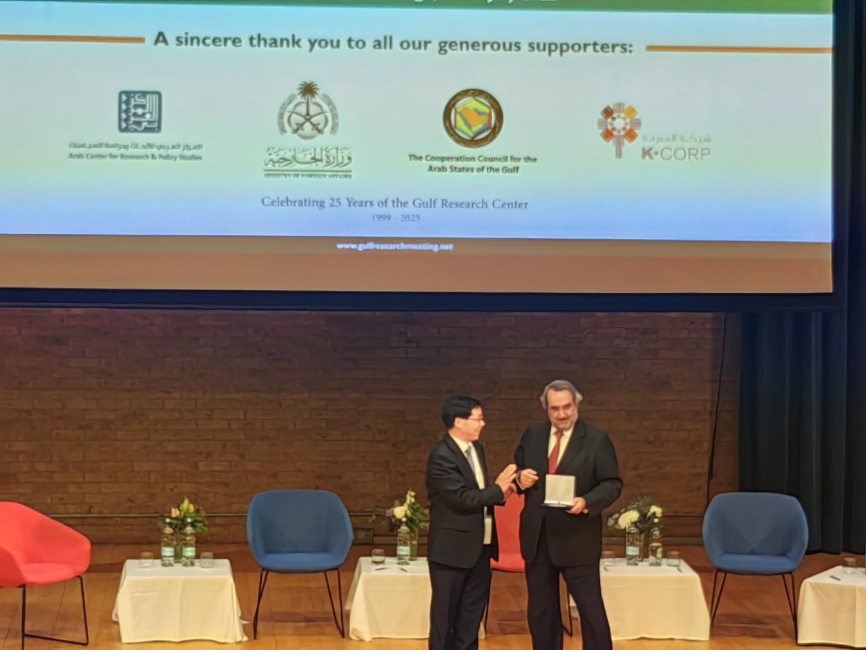 Since its inception in 2010, the Gulf Research Meeting has become one of the world’s most influential academic platforms for Gulf Studies in terms of scale, participation, and academic impact. Dr. Sun Degang has attended the GRM for 13 consecutive years as a workshop convener. He has co-edited multiple conference volumes and special journal issues in collaboration with senior scholars such as Prof. Tim Niblock (former Director of the Institute of Arab and Islamic Studies at the University of Exeter; and Academic Committee Member of the Institute for International and Area Studies, Tsinghua University), and Ambassador Talmiz Ahmad (former Indian Ambassador to Saudi Arabia, Oman, and the UAE).